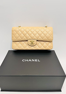 CHANEL 클래식 캐비어 베이지/골드/미듐